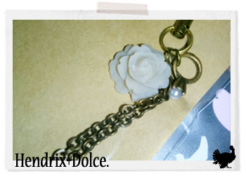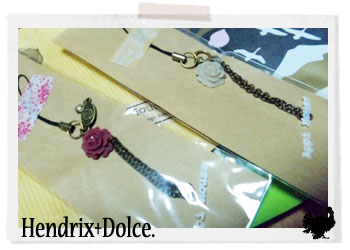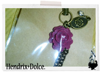 こちらは赤いバラにバラ模様のチャーム。因みにこっちはママン(皆川母)に奪われました…orz 「2つあるんだから1つくれたっていいじゃん!」と…まぁロールケーキとクッキーのストラップは独り占めしてしまったのでね…。ポーチと巾着はママンの作品ですし…ね…ヒトリジメイクナイ!!