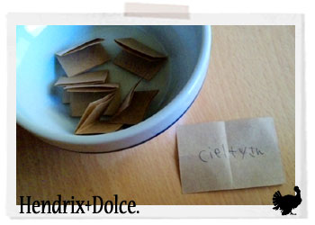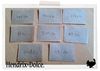 皆様のお名前を書いた紙を折って、こんな感じで格納。ここの中からウチの母、通称:皆川母にくじを引いてもらいました!