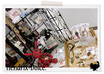 写真は棚じゃなくてテーブルなんだけど、一応テーマみたいなのはキラキラしたもの?乙女?可愛いの?何かそんな感じです。レースを使ったコサージュとかパール使ったストラップとかピンク系のネイルチップとか置いてます。そして唯一のうさぎ型ぬいぐるみ。柄もアリスっぽい柄で実はお気に入りですw月末辺りにここのテーブルに新作が登場する予定。布小物だから私が作ってるんじゃないけど、生地は私が一目惚れしたやつです。お楽しみに~!!ww